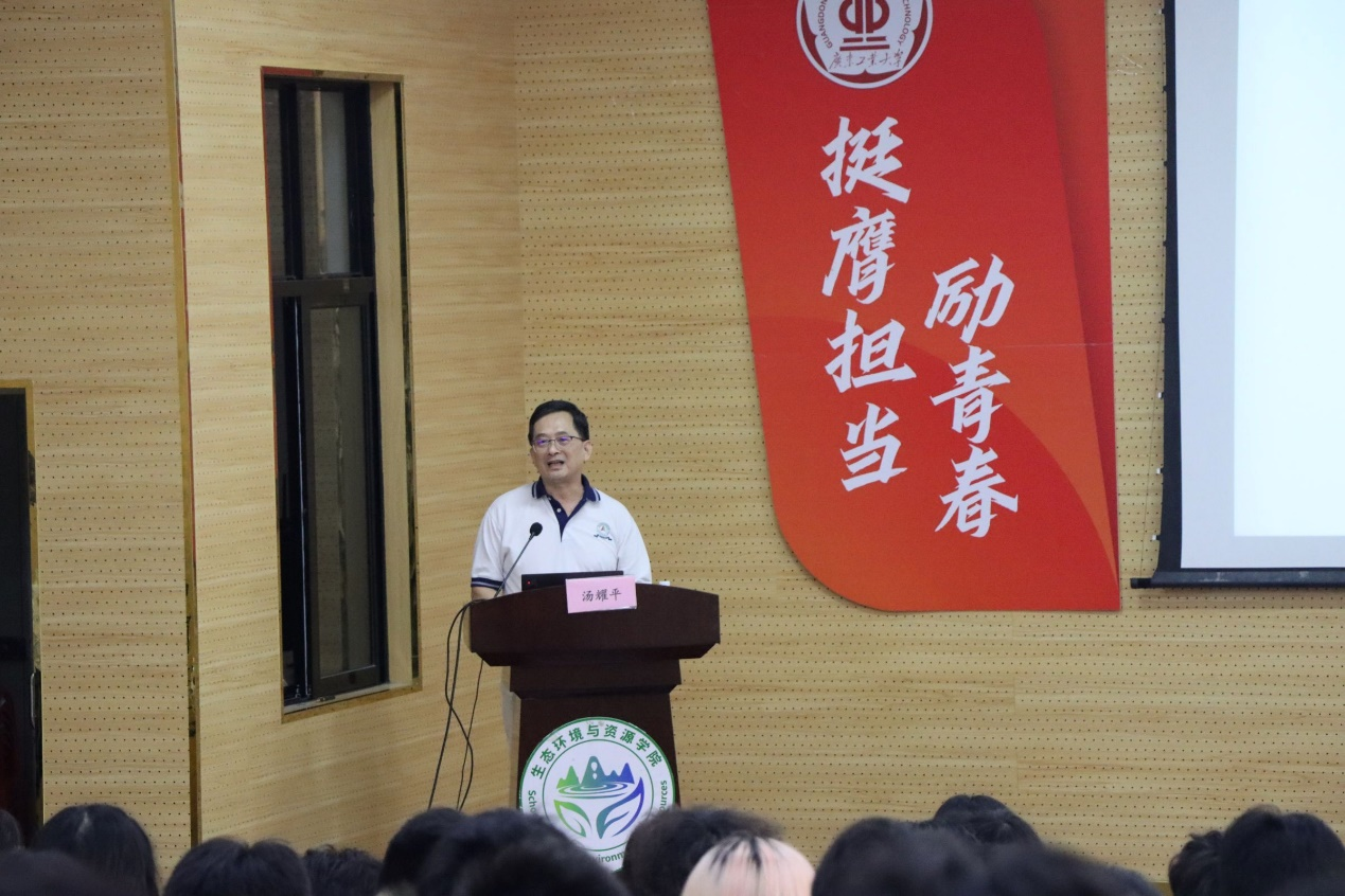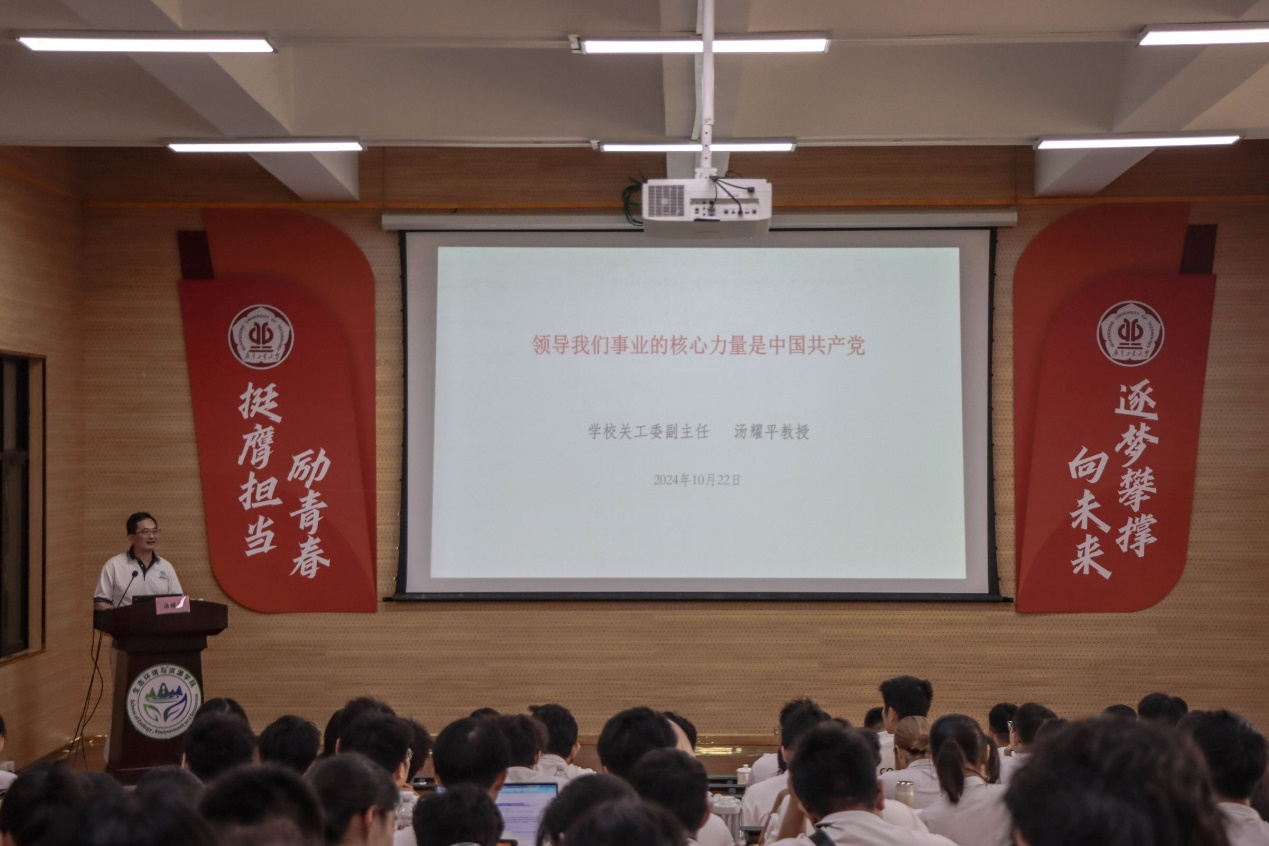 2024年10月22日下午,我校关工委副主任汤耀平受邀来到科技南楼报告厅,为生态环境与资源学院和91大赛