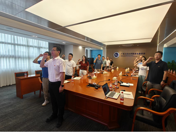 最后,沈彬带领全体党员面向党旗庄严宣誓,一同重温入党誓词。