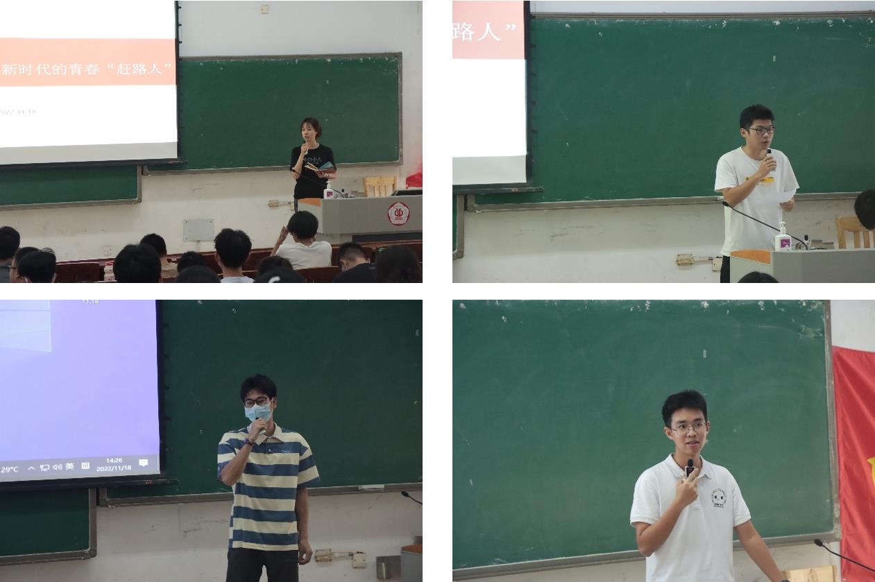 石宇杰副书记以《牢记使命担当,做好新时代的青春“赶路人”》为主题,分享了他在2019至2021年间于广东省清远市英德镇雅堂村参与打赢脱贫攻坚战的经历,强调入党积极分子应该以一名优秀党员的标准严格要求自己,更应积极顺应国家潮流与大势,当国家需要、人民需要时,毫不犹豫,挺身而出。