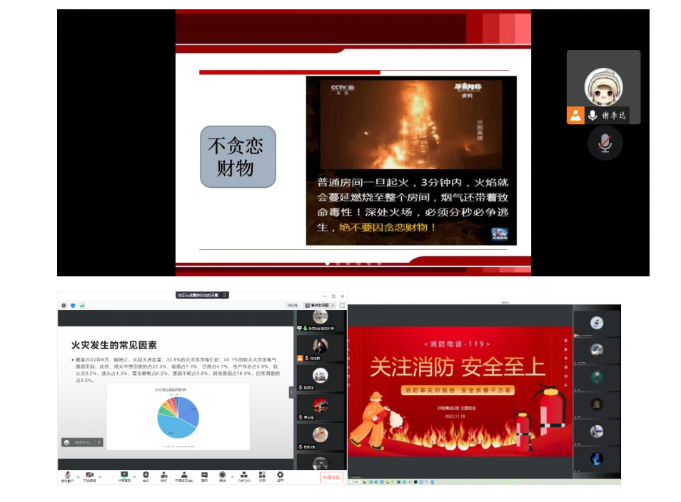 11月9日-20日,利用“全民消防学习云平台”开展线上消防安全学习,学院组织各班纷纷开展消防主题班会,深入学习消防安全知识。