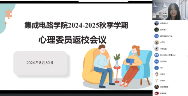 联合生态环境与资源学院在线上召开了心理委员返校会议。心理健康教育中心周洁莹老师、学院心理指导老师蒋佳琪以及全院的心理委员参加了本次会议。