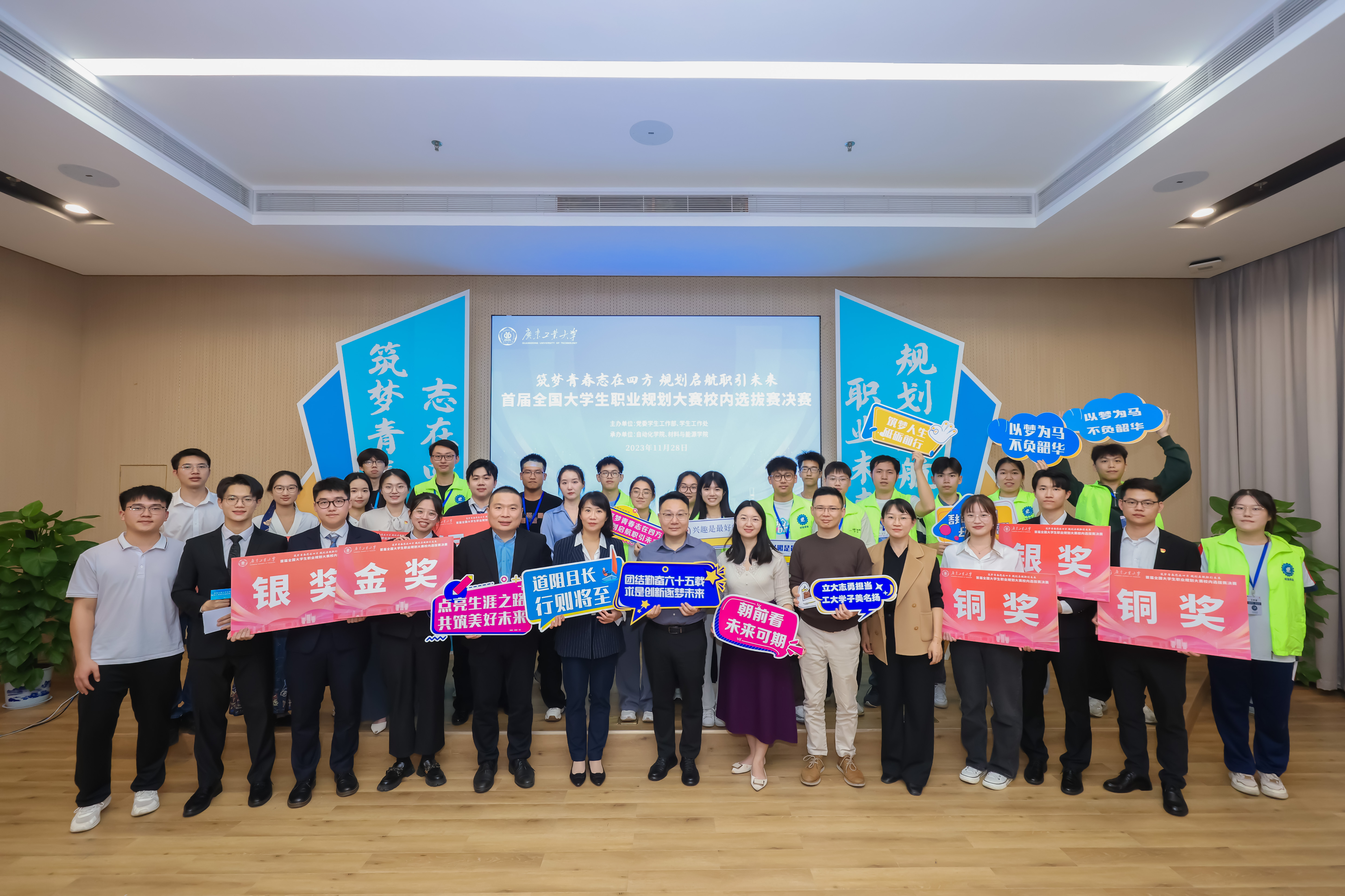 11月28日,由党委学生工作部、学生工作处主办,自动化学院、材料与能源学院共同承办的首届全国大学生职业规划大赛校内选拔赛决赛在大学城校区大讲堂圆弧报告厅(成长赛道)、第二会议室(就业赛道)顺利举办。