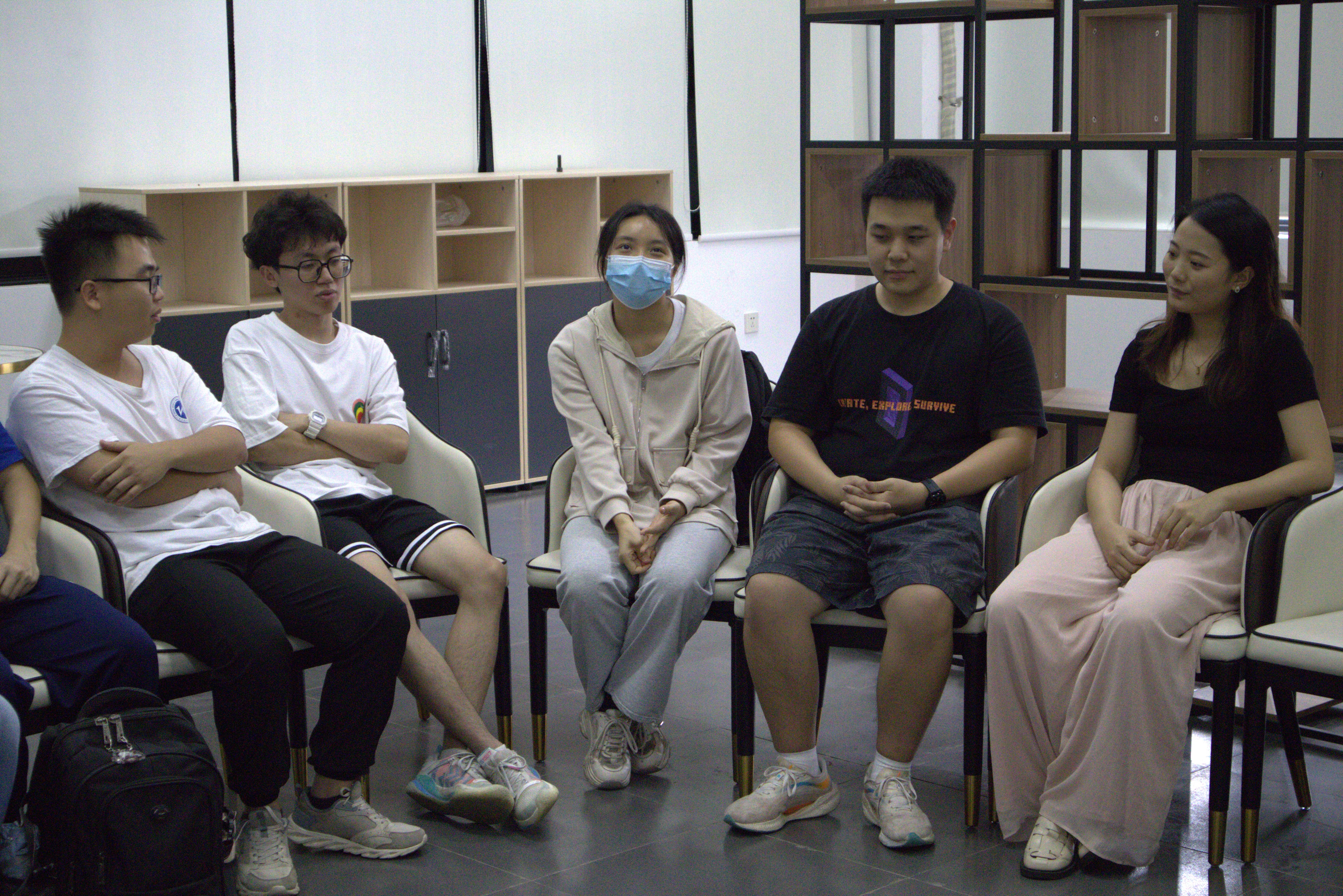 首先,陈遥带领团队成员建立团队规则,帮助成员互相熟悉。接着,蒋佳琪带领团队成员在彼此信任的团队氛围里依次分享近期的压力和苦恼,引导其他成员做出回应。真诚的反馈让同学们感受到了深切的共鸣,并对自己目前的困境有了更多不一样的视角和面对的勇气。