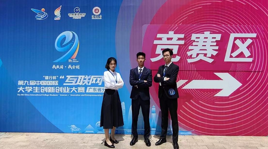 在“互联网+”赛事省赛首金的历史性突破。备赛期间,学校领导的关怀和相关部门的支持,为团队注入了一剂强心剂。比赛当天,学院党委副书记石宇杰和项目指导老师谭北海亲临决赛现场观摩指导,为参赛团队加油打气。