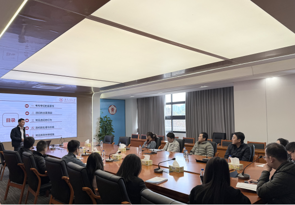 召开秋季学期期末班主任工作会议。会议邀请了教务处考试中心莫畅老师分享考试违纪作弊的防控经验,学院党委副书记石宇杰、各年级班主任、辅导员参会,会议由石宇杰主持。