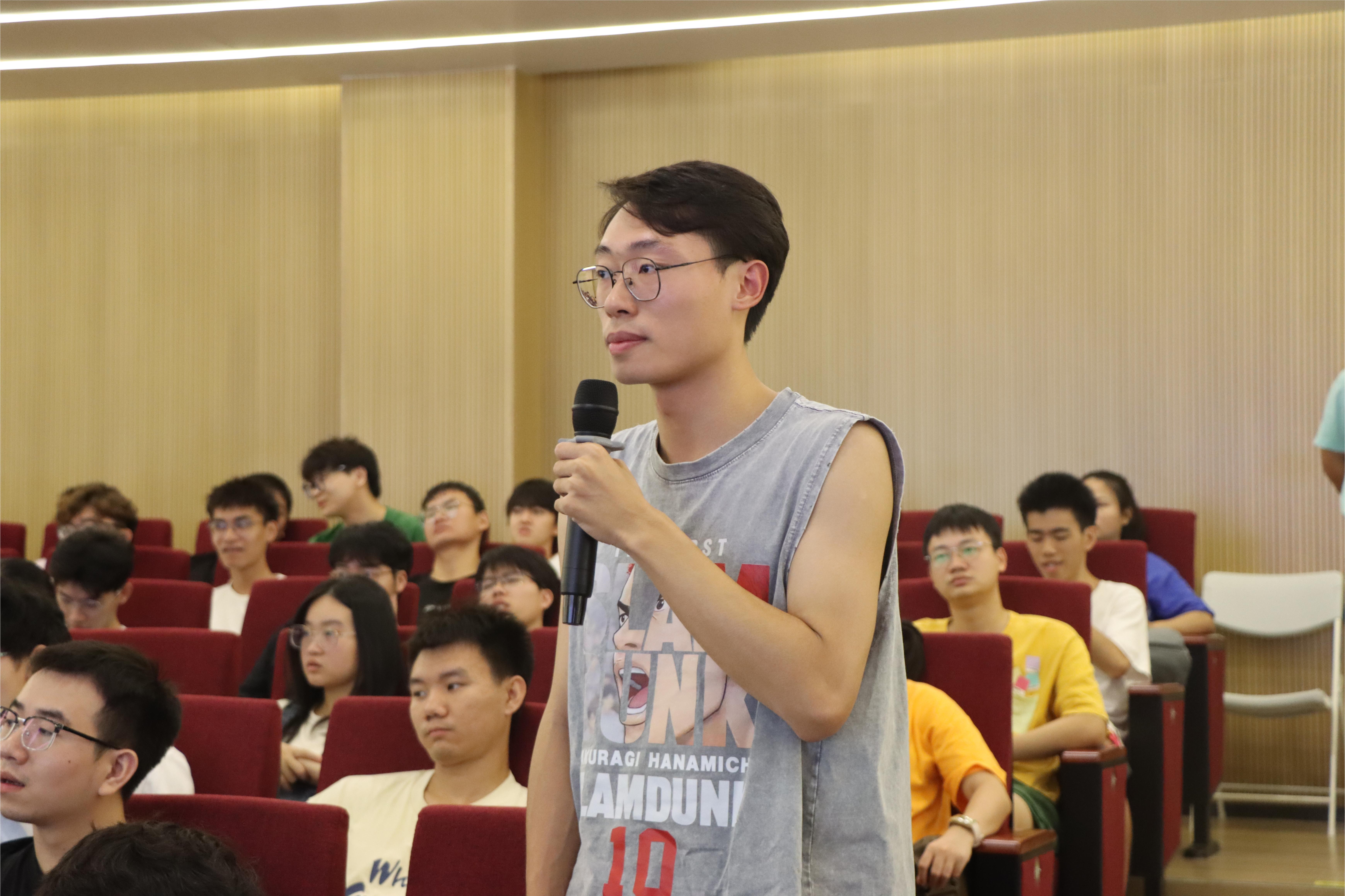 杨少华总工首先介绍了电子五所的基本情况,结合典型案例向同学们介绍了五所在面向国家战略、服务社会发展等方面所承担的科研项目,分享了目前的行业现状,指出了未来的发展方向,鼓励师弟师妹们在校期间打好专业基础,多参与科研,将理论知识和实践相结合。在交流环节,同学们踊跃提问,现场气氛热烈。陈丹部长向同学们介绍了电子五所的91大赛和人才需求,并发出邀请欢迎同学们加入电子五所。