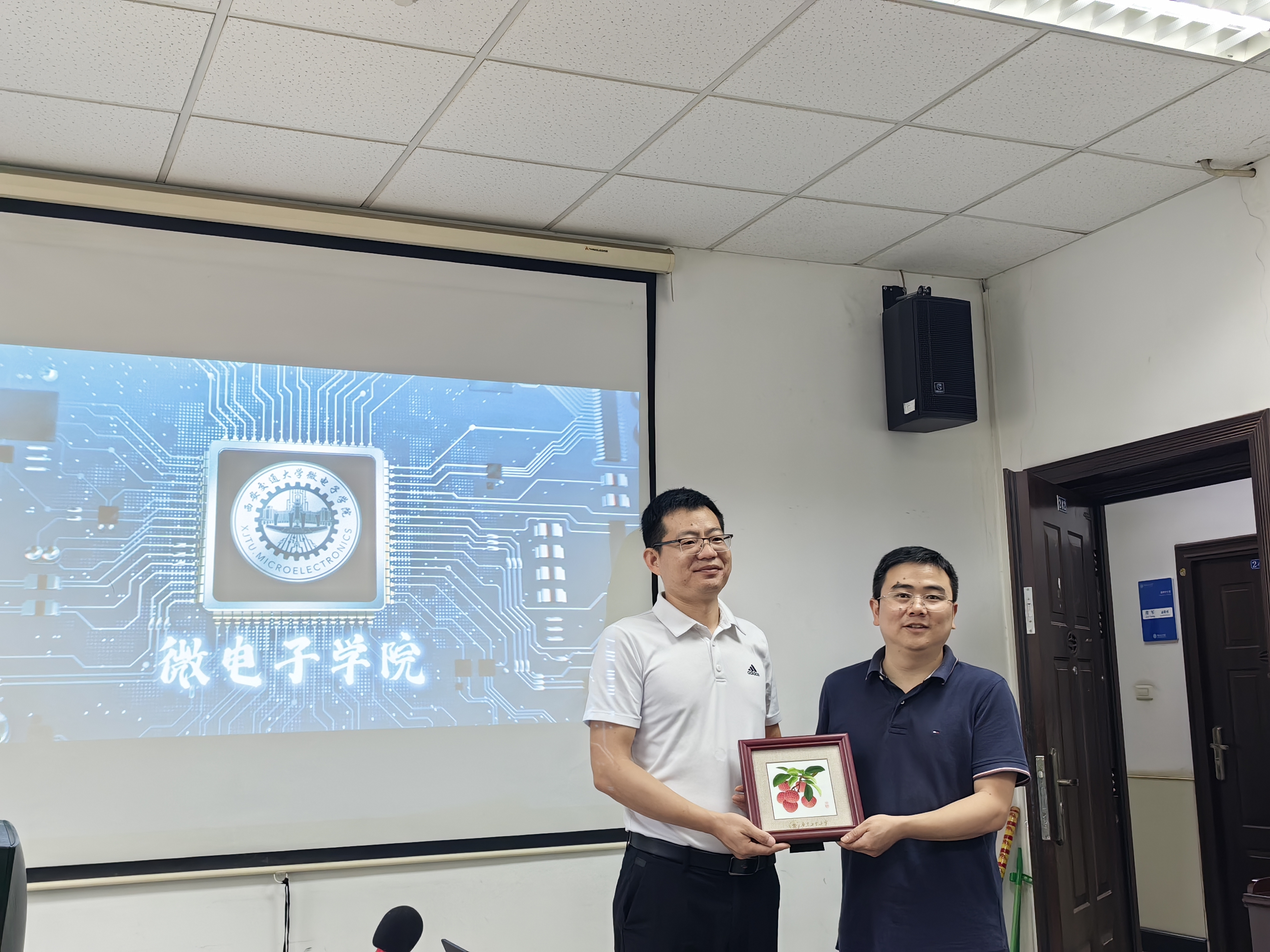 沈彬书记对西安交大微电子学院的热情接待表示由衷的感谢,并向对方赠送纪念品,希望在党建、学科建设和人才培养等方面向西安交大微电子学院学习宝贵经验,同时能以此为契机,进一步加强交流、深化合作。