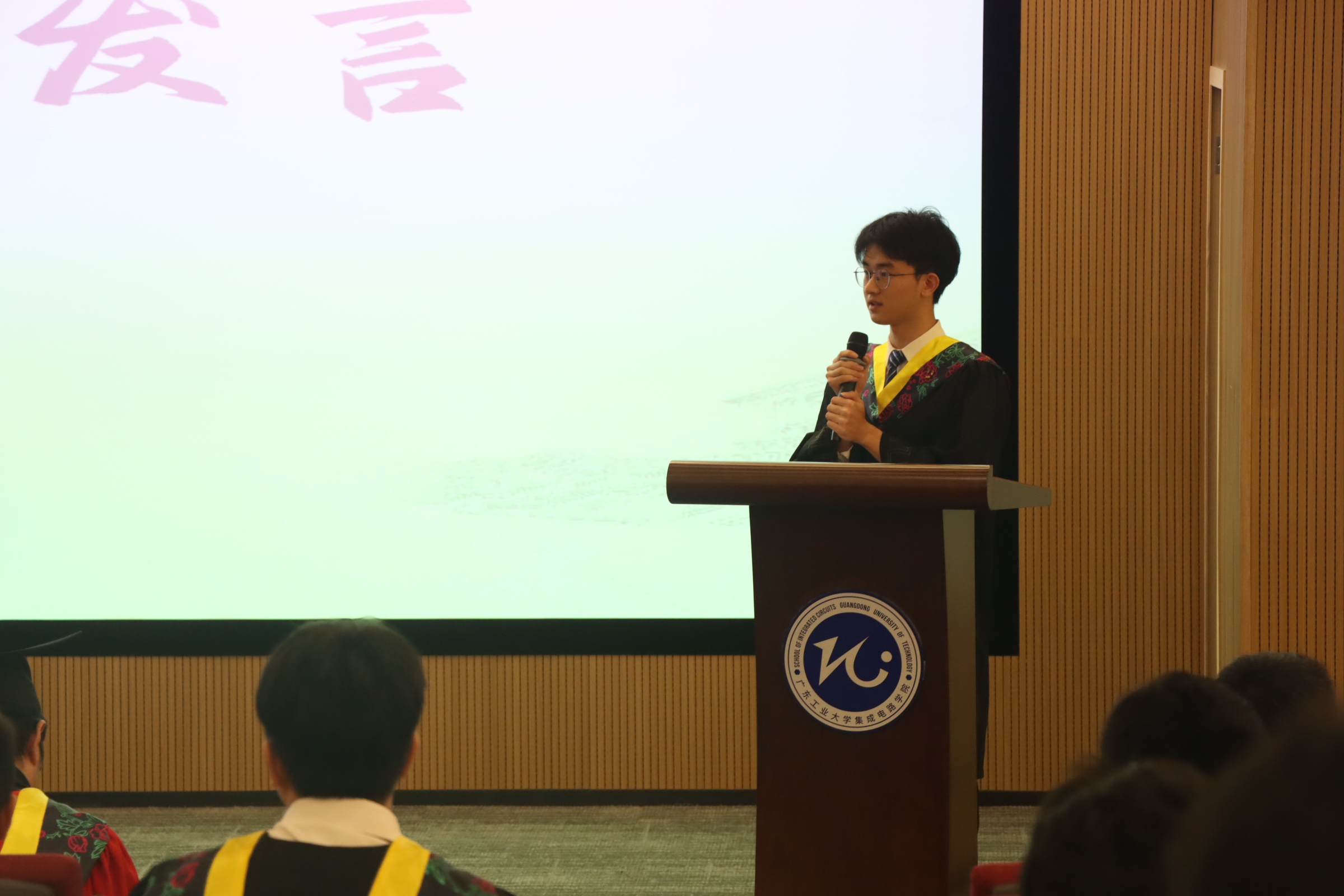 19级IC 班的余杰同学首先代表全体毕业生对学院和老师的悉心教导和精心栽培表达了真挚的感谢,并分享了与91大赛