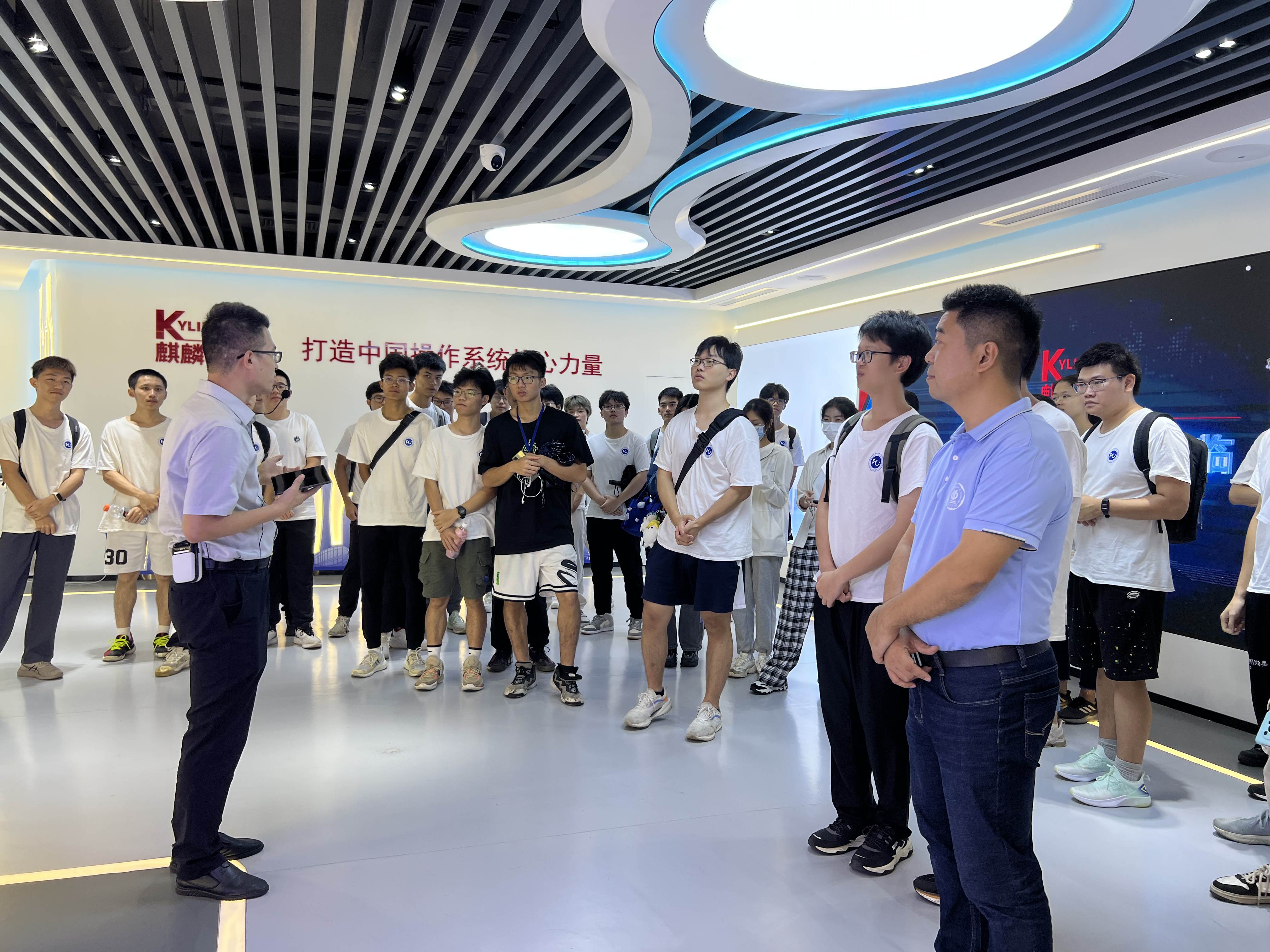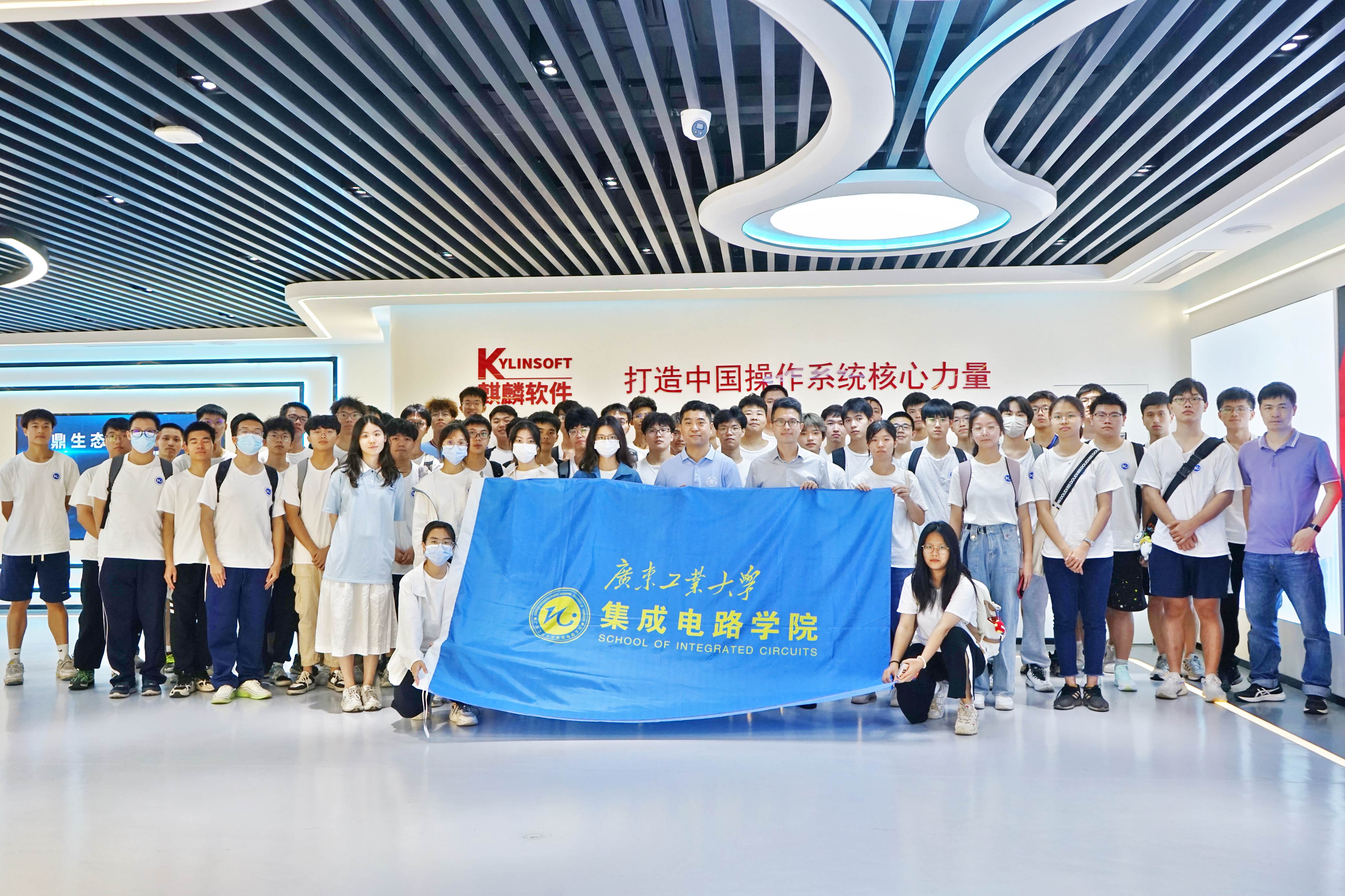 组织2022级集成电路设计与集成系统专业120名学生前往麒麟软件有限公司(以下简称“麒麟”)、飞腾技术(广州)有限公司(以下简称“飞腾”)开展参观学习,学院党委副书记石宇杰、副院长刘远、肖志明老师以及22级班主任高鹏老师一同前往。