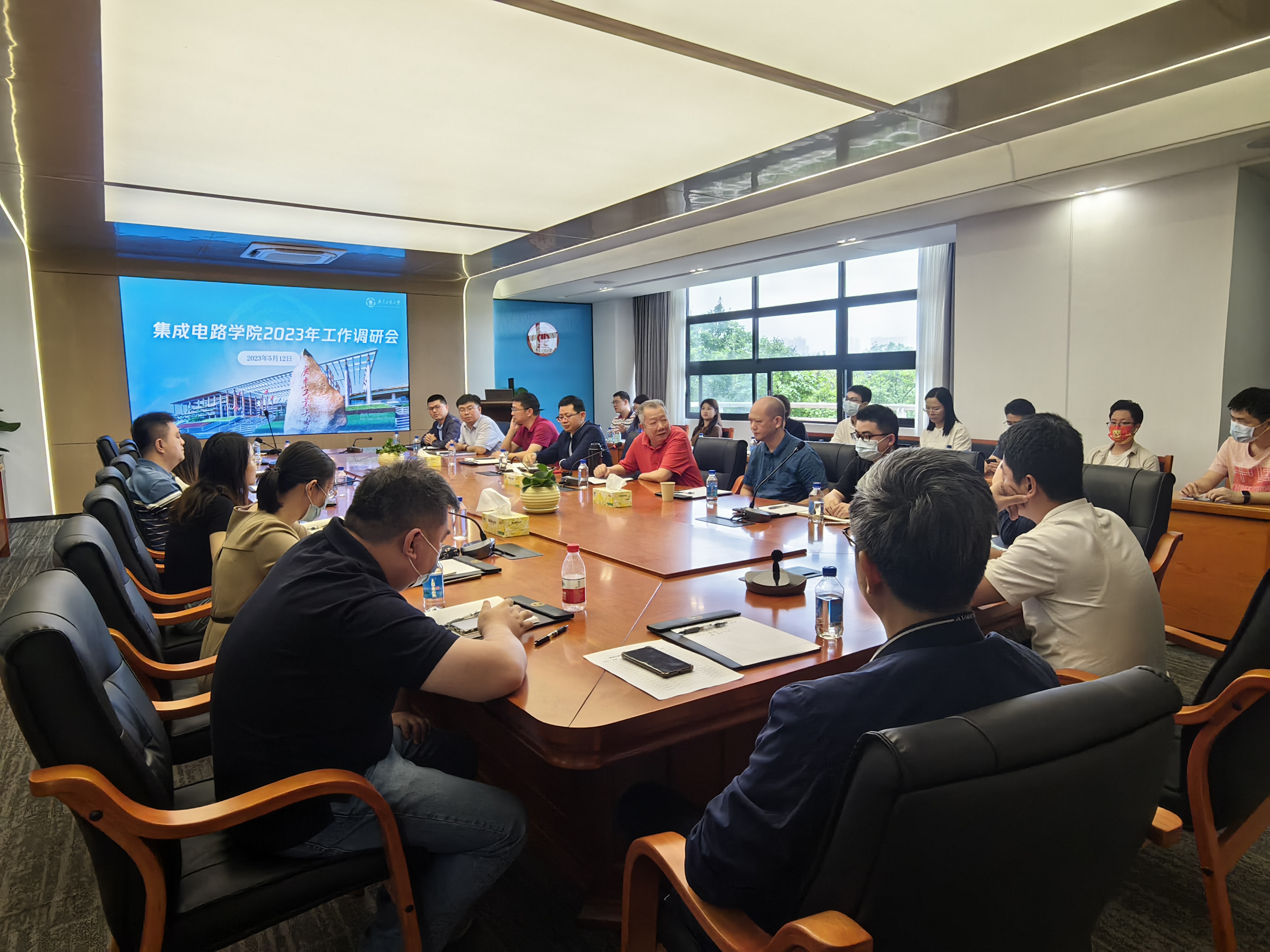 会上,学院副院长蔡述庭、刘远、刘振,党委副书记石宇杰、集成电路创新研究院副院长刘怡俊、集成电路工程系主任余凯、微纳电子学系副主任刘建分别就研究生培养、国家现代产业学院建设、科研工作、实验室建设、本科教学管理、学生工作、教师团队建设等方面的重点工作作了汇报。