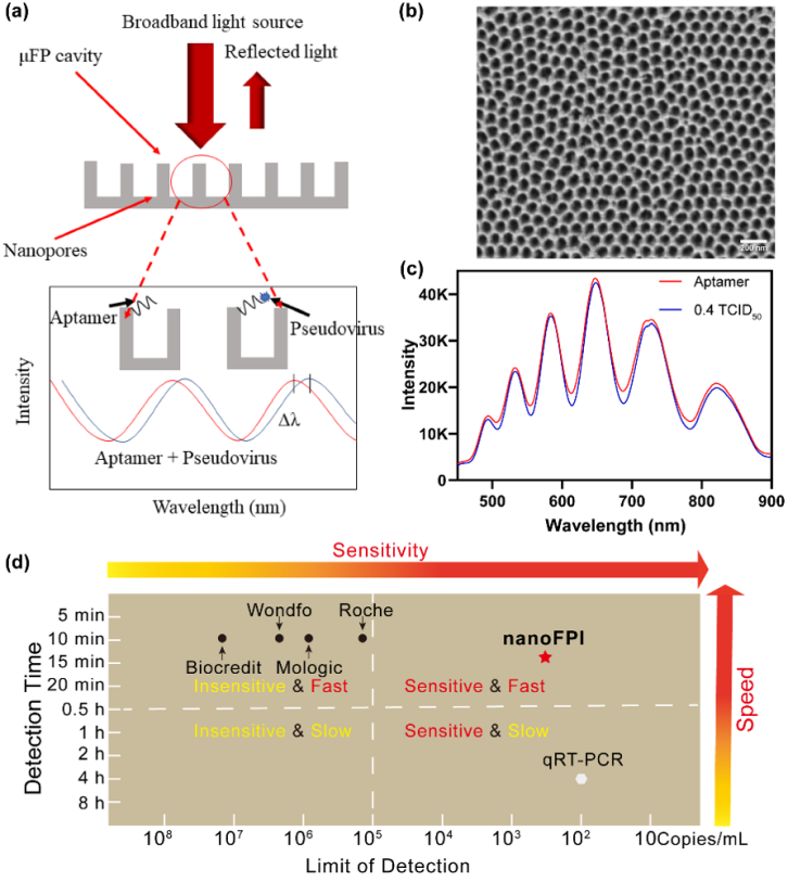 图1. 基于核酸适体的新冠病毒检测分型nanoFPI传感器