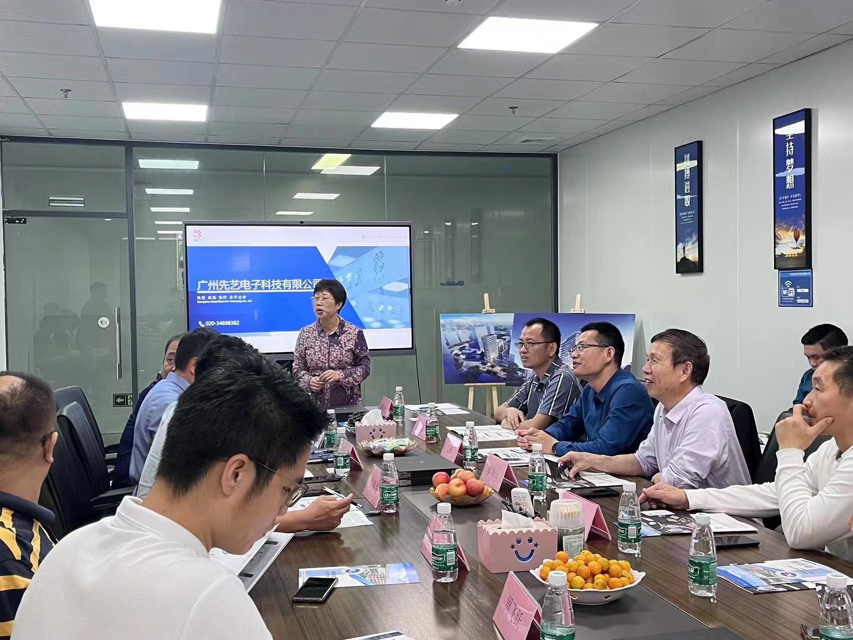 广州先艺电子联合创始人、94届校友黄洁菲总裁对到访的领导、老师和校友表示热烈的欢迎,围绕企业的创办历史介绍了企业的基本情况,并详细介绍了公司在微电子封装互连材料、微电子封装互连器件和第三代功率半导体封装材料等方面的研发情况,期待通过搭建校企合作平台、科产教融合实践基地等,吸引更多优秀的学来企生业发展。