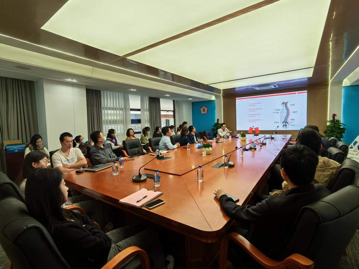 吴树旭医生重点讲解如何做好脊柱管理,为教职工分析了脖子发僵、发硬、疼痛、反复落枕、腰酸背痛等颈腰腿疾病的产生原因,提出预防脊椎病需要做到三点:坐、站、行姿势好、常热敷、多按摩,提醒教职工要多运动才能远离脊椎病。