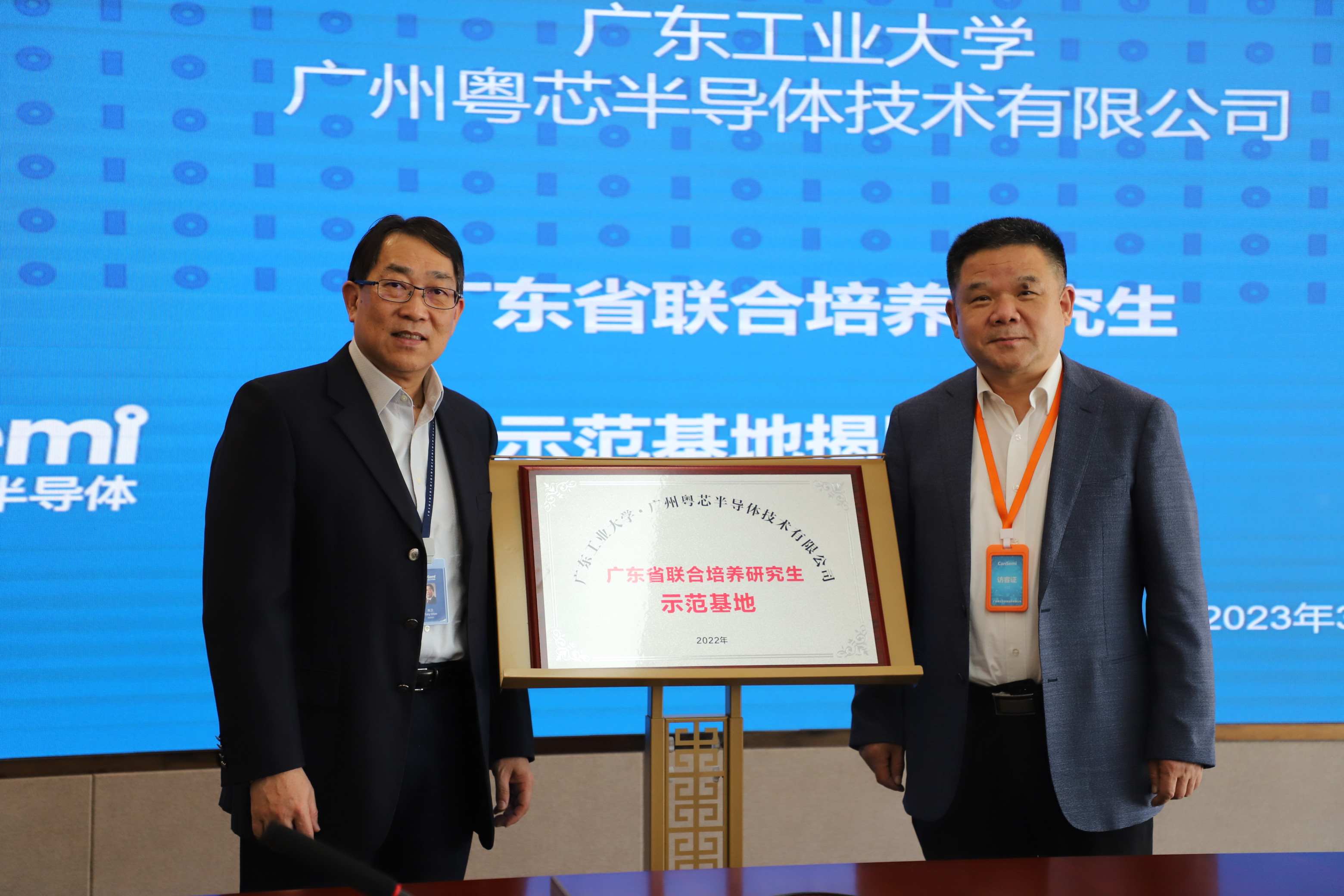 -广州粤芯半导体技术有限公司联合培养研究生基地”的揭牌仪式、以及11名校外兼任硕士生导师的授聘仪式 。