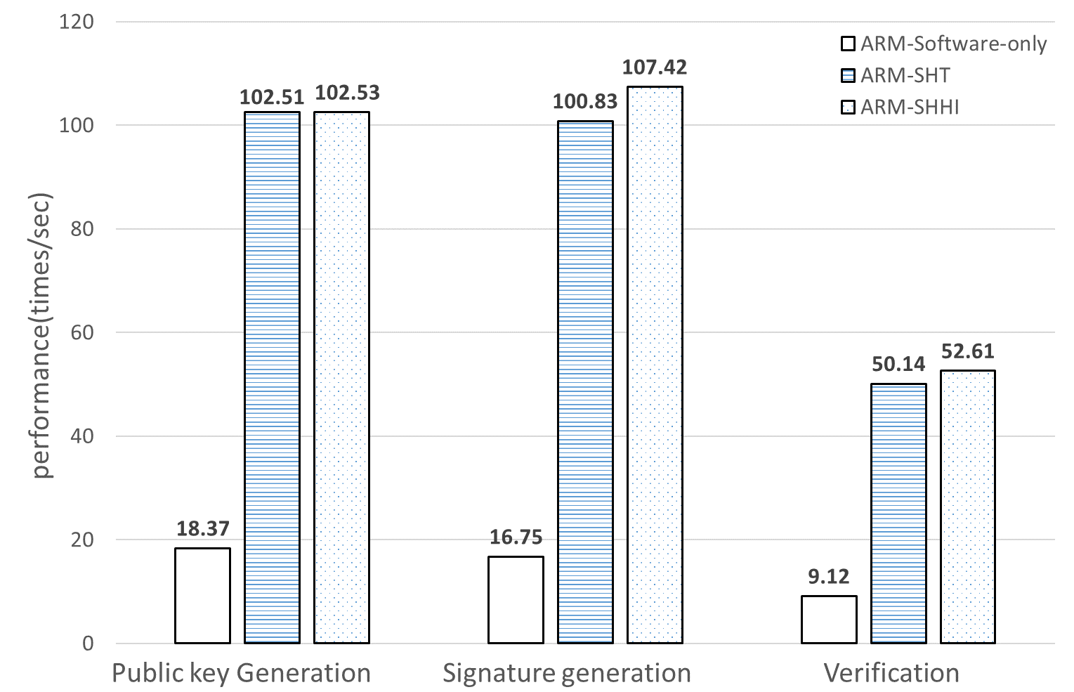 智能设备的安全面临着巨大的挑战。作者提出了一种新的适用于此类设备的混合密码框架。采用软硬件协同设计的方法,实现了一种高效的基于SM2、SM3和SM4算法的加解密和数字签名方案。首先,根据纯软件解决方案的分析结果和设计约束条件下的硬件开销,将框架划分为软件部分和硬件部分。其次,通过软硬件协同设计实现了整个方案的流程和嵌入式算法。最后,提出了SM2/3/4算法的改进实现,以获得更高的效率。在该实现中,一些软硬件模块被并行化,从而减少了运行时间,提高了性能。所提出的设计是安全的,并且可以抵抗简单功率分析(SPA)攻击。特别是在数据传输和处理方面,采用了AHB接口IP和软件调度的方法。该设计采用中芯国际110 nm工艺流片。该芯片使用了大约199K个逻辑门和1mm2的面积。该芯片的工作频率为36 MHz,功耗为23 mW。与以往同类工作的比较表明,本文提出的设计具有更高的设计效率,执行速度提高了10%以上。