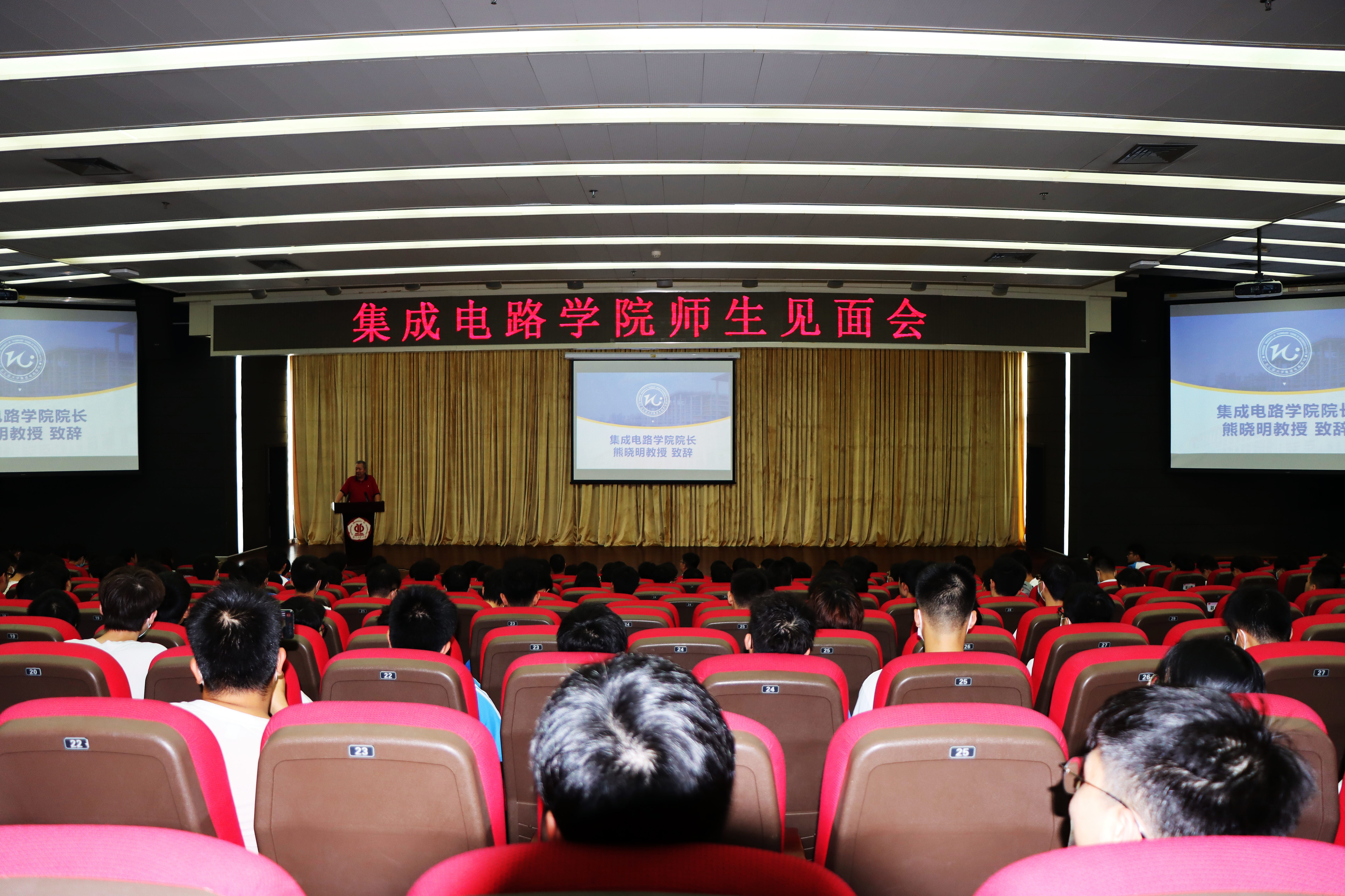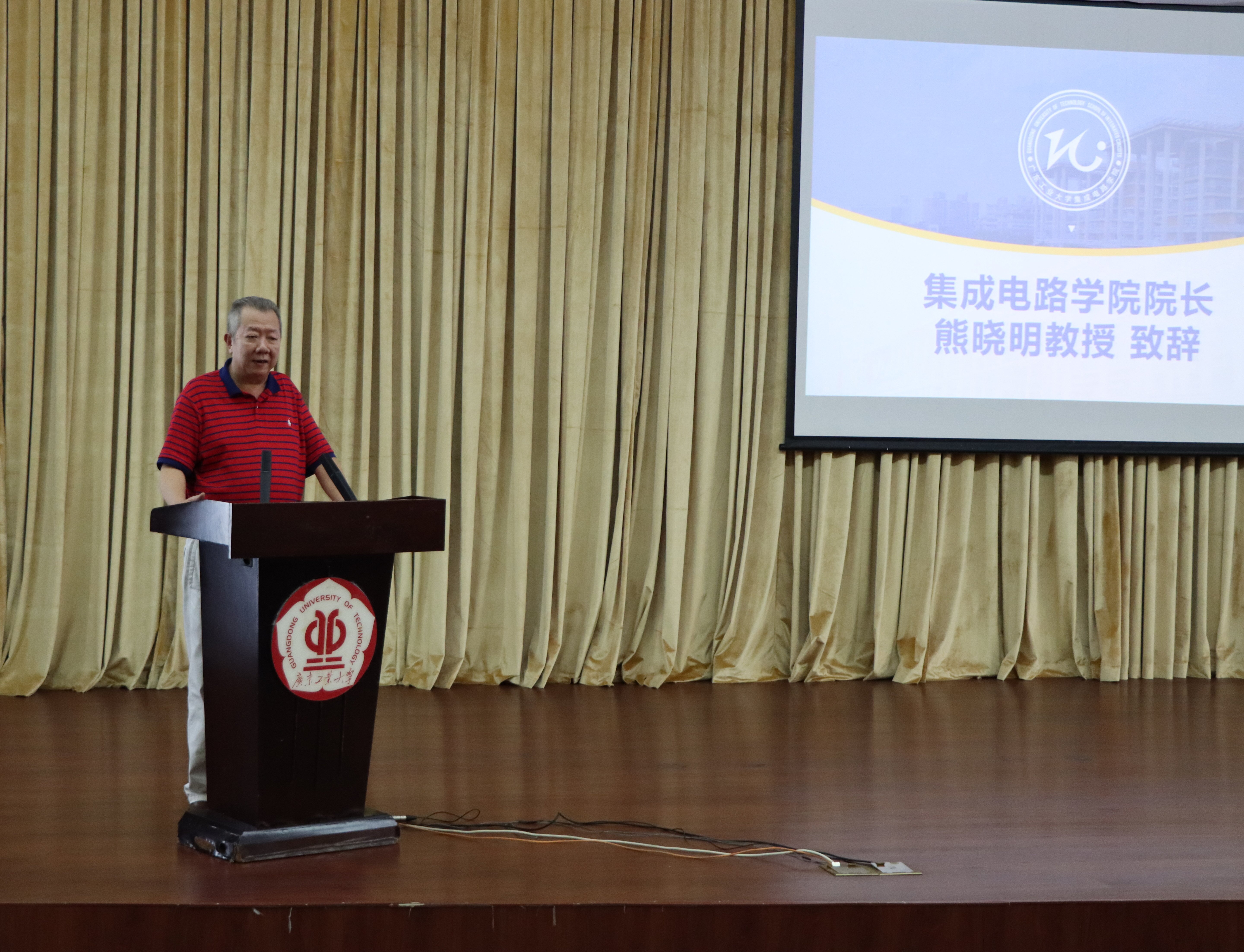熊晓明院长首先代表学院对同学们的到来表示热烈的欢迎,他从中国集成电路产业的现状出发,介绍了学院在广东“四梁八柱”工程中的重要地位,如数家珍般介绍了学院的发展历史、师资力量、教学改革的创新和资源支持等,描绘了学院的发展蓝图,希望同学们利用资源,发挥学习主动性,为中国集成电路产业贡献自己的力量。