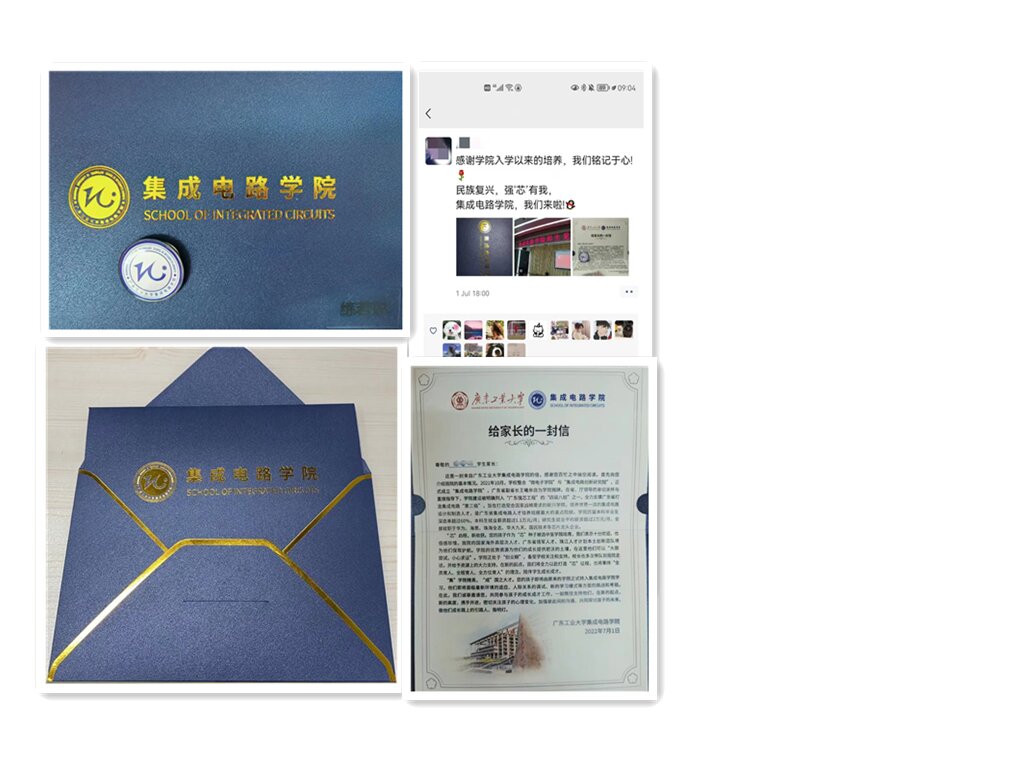 已经成为该领域华南地区最雄厚的院校之一,无论是师资还是学生规模均为我省前列,学院全体师生已经整装待发,充满信心和决心为国家集成电路产业突破枷锁,为广东省集成电路产业发展,贡献广工力量。学院为同学们精心准备了纪念品以及给家长的一封信,在同学们来到新学院前,联系班主任,组织班会,走访宿舍,提前了解学生情况等,做足充分准备迎接“芯”力量的到来!
