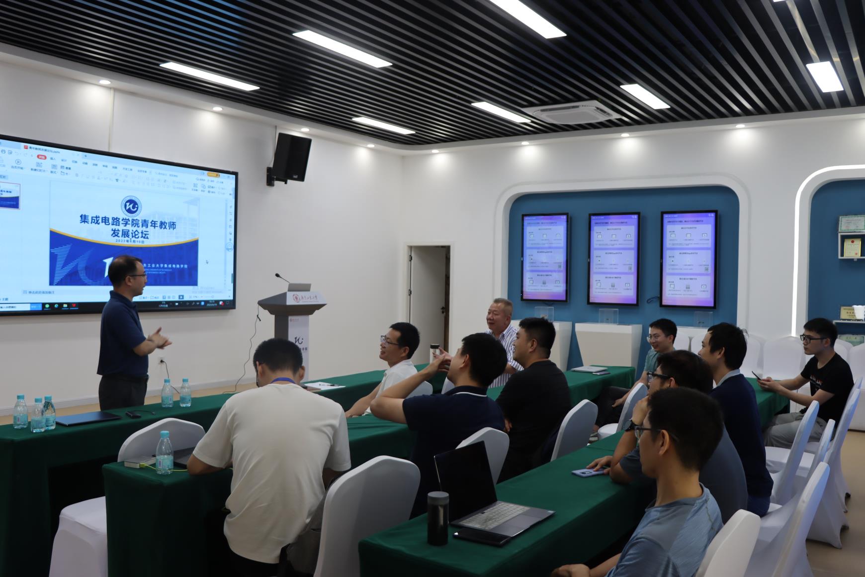 两位嘉宾与座老师进行愉快的交流,学院青年老师们纷纷表示在这场活动中看到了前辈老师们的辛勤耕耘,为自己开展科研和指导学生竞赛打开了思路。
