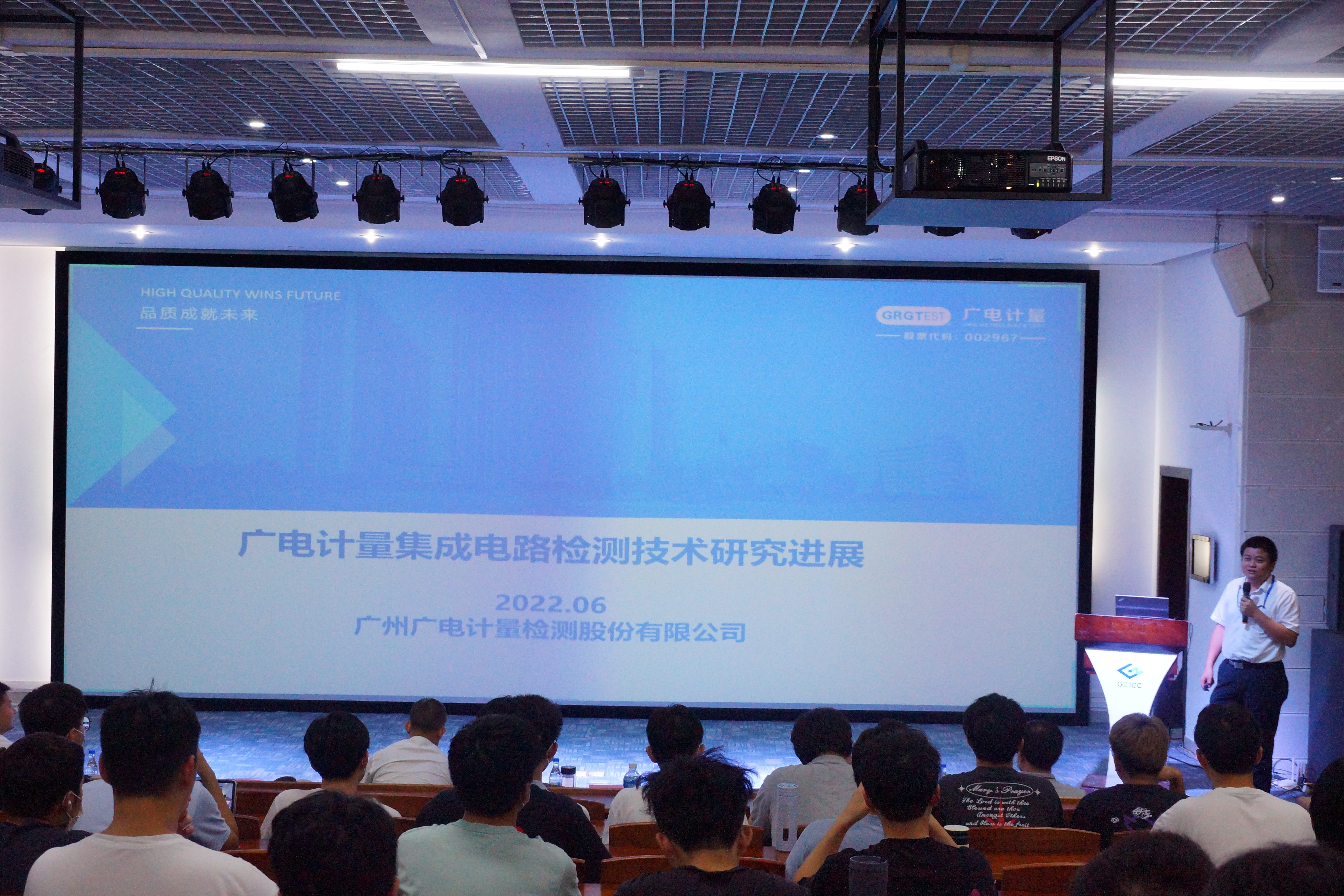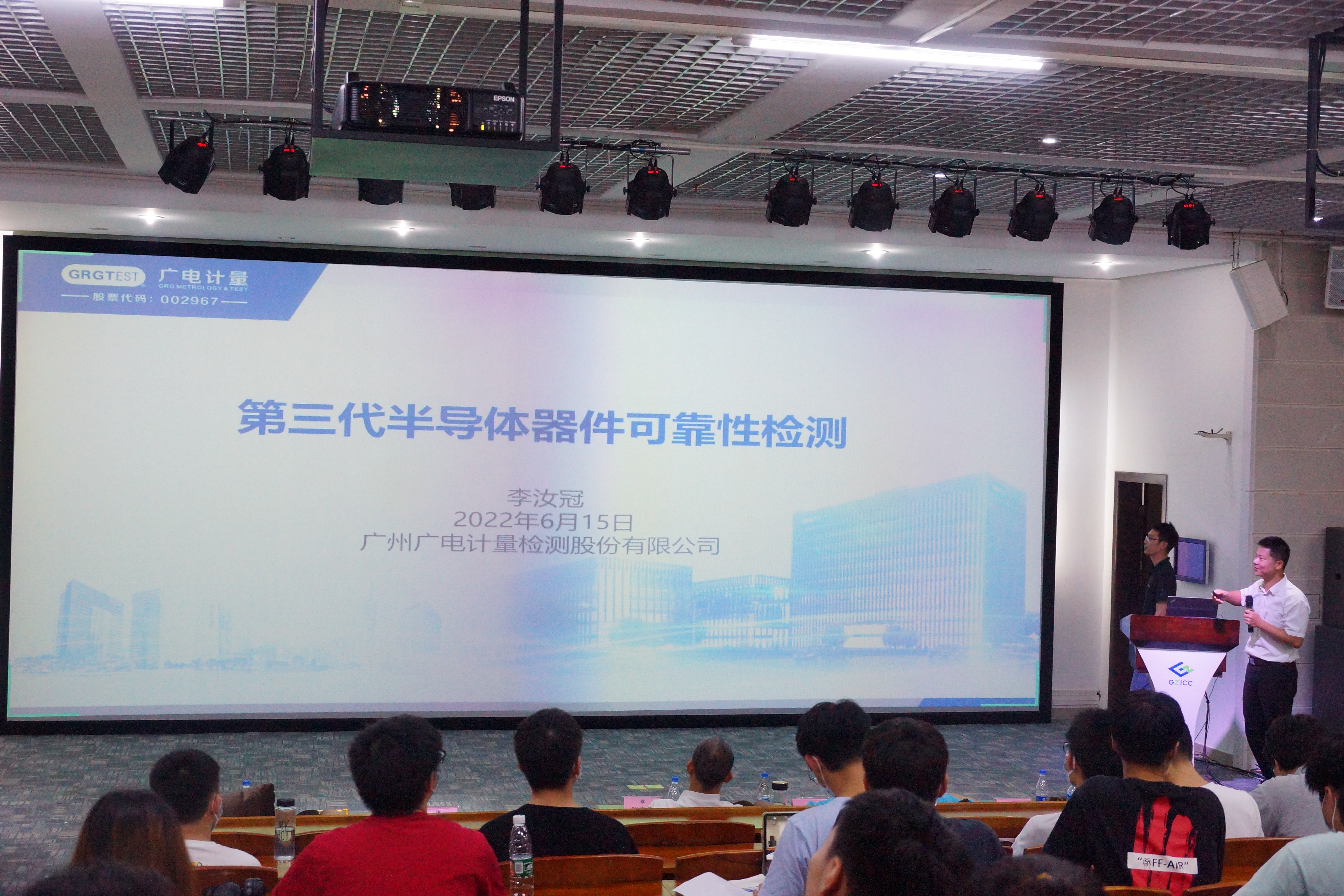李汝冠博士以“第三代半导体器件可靠性检测技术”为题,介绍了SiC、GaN等第三代半导体材料与器件的特点、优势与应用,深入讲解第三代半导体器件的可靠性检测技术等,并热情邀请师生前往广电计量交流学习。