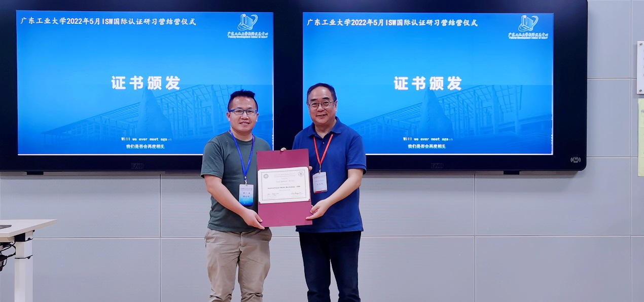 邢延、谭北海两位老师参加了由国际认证专家张胜全领衔的ISW国际认证金牌团队主讲的ISW(Instructional Skills Workshop)教学技能系列工作坊,并顺利完成ISW国际认证研习,荣获ISW国际认证证书。