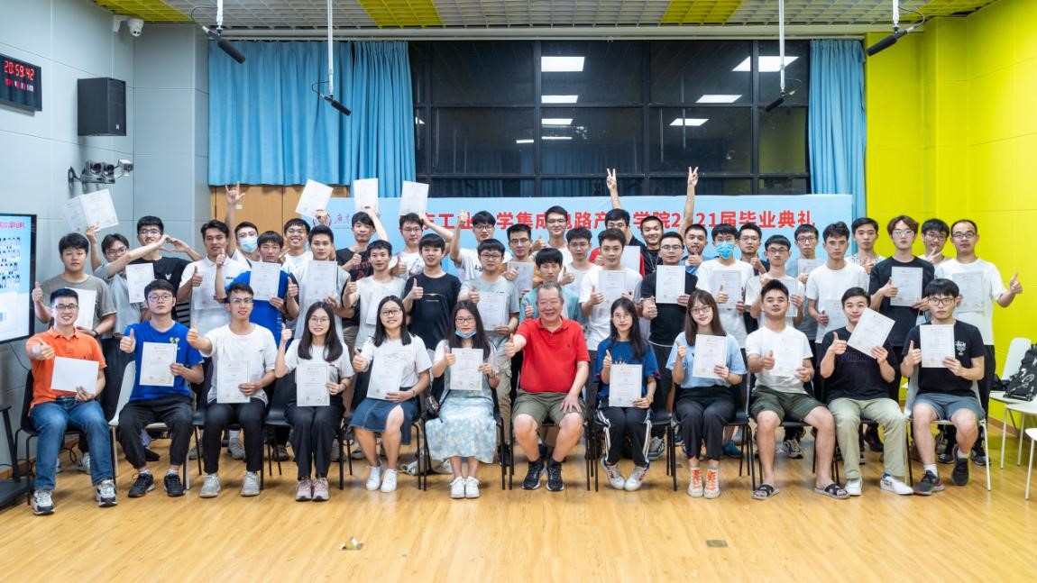 接着学院老师们与毕业班的同学们一起欣赏大家上课、做实验、企业实践、生活等片段,把课堂再次推向高潮,视频最后播放毕业班班级主题曲《凤凰花开的路口》,随着旋律大家不知不觉合唱起来。活动最后熊老师为IC班的全体同学颁发多专业融合培养证书,并合影留念。至此本次活动圆满结束。