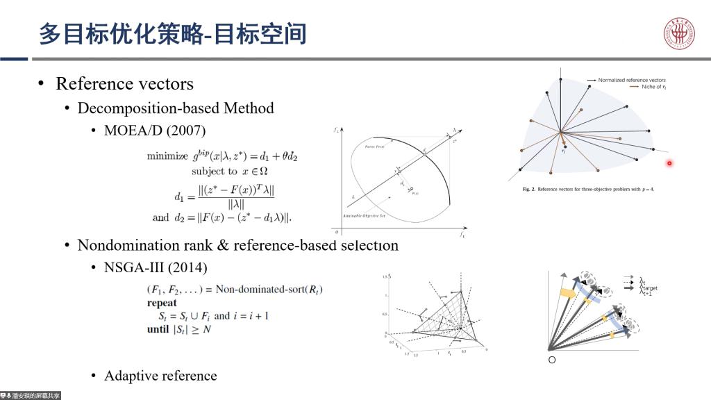 在本次报告中,潘博士首先分别对最优化问题进行分析,并详细地分成了单目标和多目标问题,展示其在路径规划、迷宫问题、调度问题、汽车防撞等方面的研究成果;其次,潘博士提出进化计算,并展示了基于种群的算法;接着潘教授对多目标优化问题继续分析,分别介绍了高维多目标问题、大规模多目标问题等的优化方法;然后,潘博士作出了针对目标空间及决策空间的多目标优化策略,进行了对多样性和收敛性之间的权衡,及其对Problem transformation等的分析讨论;紧接着,潘博士介绍了策略协同、策略推荐与最优决策,并提出了评价指标与测试问题;最后潘博士在线上与大家进行了机器学习与多目标优化的结合、多峰值优化问题等问题的讨论和互动。