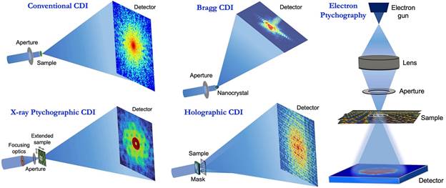 相干衍射成像的几种构型示意图
